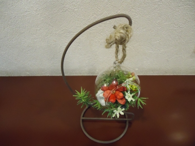 JUGEMテーマ:お花 雲一つない快晴の日が続いてます 爽やかで心地よくて やっぱり気持ち良すぎて眠くなってしまいます しあわせ〜 毎月お仕事のお休みに合わせて マンツーマンレッスン楽しみに来てくれるOさん 多肉植物系をいくつか作り一緒に飾るのに ピッタリのガラスの器つりさげ型作りました 爽やかで可愛く出来ました 来月はラベンダーのリースの予定