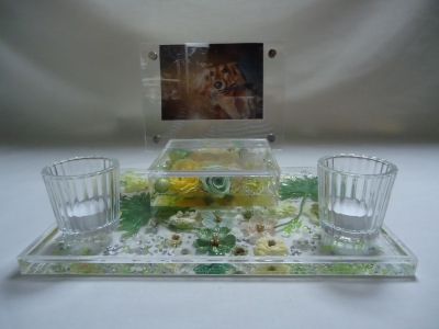 JUGEMテーマ:お花 気持ちのいい季節ですが 花粉の舞も絶好調です あともう少しの我慢です 石材振興会のイベントもあり 今回ジェルフラワーの ペット仏壇作りました ペットも大切な家族。写真とジェルフラワーで いつまでも癒してくれます プレートジェルにフレームジェルと組み合わせてます