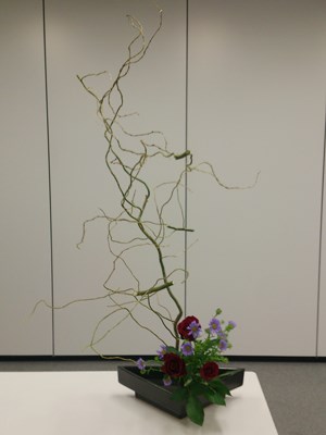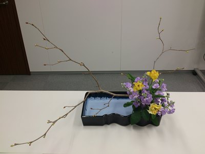 <花材> 土佐ミズキ・SPストック・バラ<課題> 草月カリキュラム 4-15 上からの目線を意識する<設置> 社長室この花器は色合いがキレイなので、せっかくならそれも見せたい!ということで、花器の縁と土佐ミズキの線を合わせて、それを邪魔しないように花物をまとめて挿しこみました。水面を見せる課題にもよく使う花器で、今回もその課題につながるような作品になったと思います。<花材> キンポウジュ・ストック・ガーベラ<課題> 草月カリキュラム 1-3 基本立真型[投入]<設置> 不明基本中の基本、た...