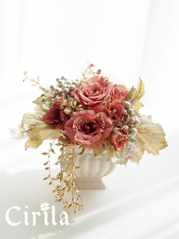 JUGEMテーマ:お花 陶器の花器以外ぜーんぶキラキラです。 光が当たるといっそうキラキラします。 キラっキラです。 ギラっギラではありません。 とてもエレガントです。 ローズについているキラキラは イエローやピンクでとっても綺麗です クリスマス限定素材は使用していません。