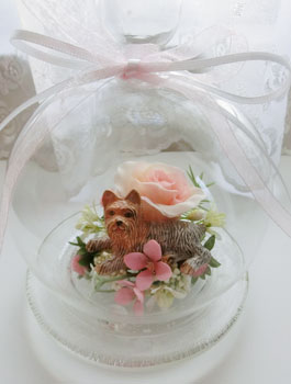 お友だちのバースデープレゼント用に承った二作品をご紹介させていただきます。リクエストの一つはガラスのドームにわんちゃんの置物をお花と共にアレンジして欲しいとのこと。お友だちの大切な家族である亡くなられたわんちゃんをいつもお部屋に飾ってもらえるようにとのステキなアイディア ご期待に添うべく出来上がったのが↓こちらです(わんちゃんの置物はご依頼主さま準備品)もう一つのリクエストはテレビの横に置けるくらいの大きさのアレンジメント写真ではわかりにくいのですがシルバーでとてもきれいな花器です。別々に飾...