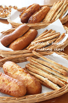 ファミリーコースのレッスンでした。 ファミリーコースの最後に習う バターフィセル、 フランスパンは厳密にいうと 長さの規定などが色々あるらしく 簡単フランスパン、 といったところでしょうか。 簡単といっても奥の深いパンで 味ももちろん美味しいですよ。 プラスメニューでチーズティックを 焼きました。 デザートメニューは くるみまんじゅうです。 サブレ生地のなかに あんこが入っています。 和洋折中なお菓子です。 こちらのクラスは 今日でファミリーコースが終了。 これ...