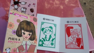 JUGEMテーマ:パン教室 以前にも、お話ししたことがありますが、娘は、岡崎にゆかりのある『内藤ルネ』さんのイラストが大好き。 お小遣いを貯めて、グッズを買ったりしています。 今月下旬から、岡崎市立美術館で、内藤ルネさんの作品展が始まるのを機に、スタンプラリーが始まりました。 市内に8つのスタンプポイントがあるのですが、ルネさんのスタンプを3つ集めれば、ポストカードのセットがもらえるの。 とりあえず、JR岡崎駅の観光案内所・岡崎公園・...