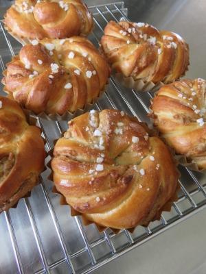 JUGEMテーマ:パン教室 昨日、今日と、あたたかくいいお天気。 洗濯がはかどります。座布団カバー&スリッパ&発酵用のブランケット・・・。乾く乾く。 でもね、11月になると、寒くなるだろうから、早速、ホットカーペットも敷いておきましたよ。 さて、月はじめは、試作ですから。 くるくる成形、楽しんでもらえるかな。 アーモンドクラウンは、このまま誰かにあげたくなります。 12月、冬休み前に...