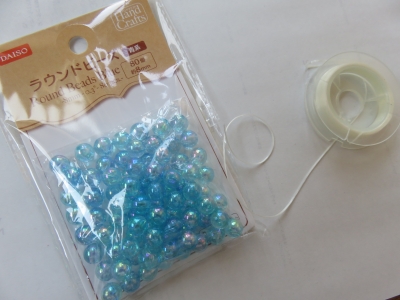 JUGEMテーマ:パン教室 いいアイディアが思いついたので、雨のしずくを、もう1パターン作ることにしました。 ダイソーで手に入れたもの。 デコレーションボールってあるけれど、ふわふわで、フェルトでできているみたいな感触。 糸を通すことができるので、これまた、単純につないでみました。 雨つぶに見える? 好きな場所で止まってくれるので、玉止めしたりしなくていいの。楽チン。 大きさも色も3種類入って...