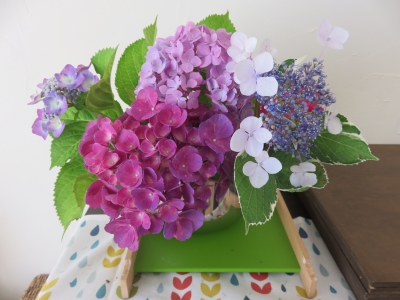 JUGEMテーマ:パン教室 先日、お越しいただいた方から、あじさいをいただきました。 一色ではなくて、いろんな種類のあじさいが、お庭に咲いているんですって。 花瓶がなくて、ボールに活けたのですが、逆にそれがいい感じ。 やっぱり、本物の色合いと質感は、素敵です。 イケアのペーパーナフキン。この柄も「あじさい」チックに見えてきて・・・ 小さくカットして、コースターがわりにしています。 &n...