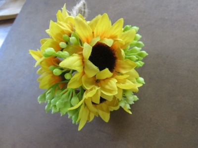 JUGEMテーマ:パン教室 先月のあじさいに味をしめ、季節の花を使えば、季節感が出るのではないかと、安易な方法に頼りはじめている私です。 夏と言えば、『ひまわり』ですもんね〜。 ダイソーで購入。ボール状になっているオーナメント。 節約派の私は、できるだけ、1つの物から『6個』作れるアイテムを選びます。 このオーナメントも、ちょうど花が6個ついていたし、サイズ的にも小ぶりだったので、チョイズしました。 で、またまた、分解...