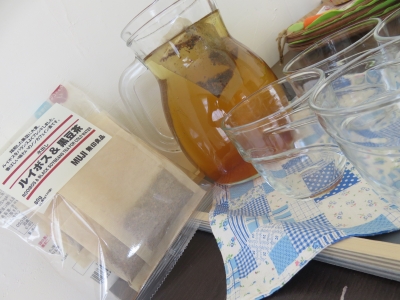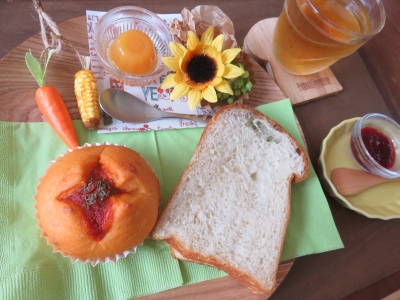 JUGEMテーマ:パン教室 今月のドリンクは、また無印の水出しシリーズ。 ルイボス&黒豆茶 豆の香ばしさが感じられ、さっぱりします。 日頃、麦茶ばっかりだもんね。 で、オレンジ&グリーンにイエローも加わり、明るいイメージで、パンを召し上がっていただいています。 ベジチーズちゃんは、ミニピザまんのようで、お子さんにご好評いただいております。 トマトケチャップより、ピザソースがおすすめだよ。