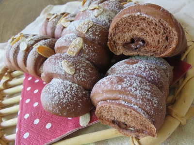 JUGEMテーマ:パン教室 2月のレッスン内容が決まりました。 バレンタインの季節ですからね。チョコレートの季節。 ということで、板状のチョコレートを巻き込んだ『ショコラロール』を作ります。 生地にはココアパウダーを入れて、ココア色の生地に。 小麦粉以外の粉を混ぜ込んでいくことをしていきましょう。 ちょっとオシャレな?巻き成形も覚えてくださいね。 そのままプレゼントにもどうぞ♥ ...