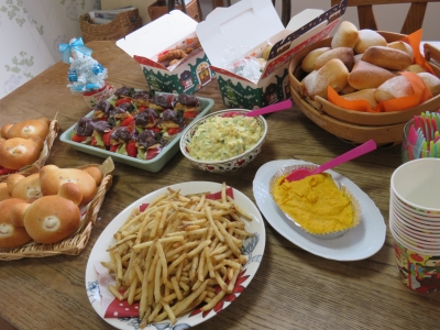 JUGEMテーマ:パン教室 メリークリスマス!!です。 我が家にもサンタさんがやってきまして、子ども達、朝からハイテンションです。 さて、今日のクリスマスは、我が家にお友達が集まってのクリスマスパーティーです。 4家族(それぞれ子ども2名+ママ)の合計12人。 それぞれ持ち寄りで、今回も楽しいテーブルになりました。 私はパン担当。料理?は、冷凍のポテトを揚げるのみ(笑) 揚げ物担当ママは、チキンフライとさつまい...