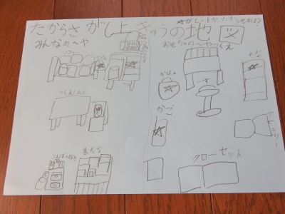 JUGEMテーマ:パン教室 先日、私の誕生日でした。 もう、自分自身は『おめでとう』の響きも微妙で、毎年、めでたさを感じなくなってきているのですが、健康に1年過ごせていることには、ありがたさを感じています。 しかし、子どもたちは、なぜかママの誕生日を楽しみにしておりまして、娘は1〜2日前から何やら机に向かってゴソゴソしておりました。 当日、娘からのプレゼント!宝探し方式になっていました。 宝探しの上級の地図 ☆のところにヒントがある...