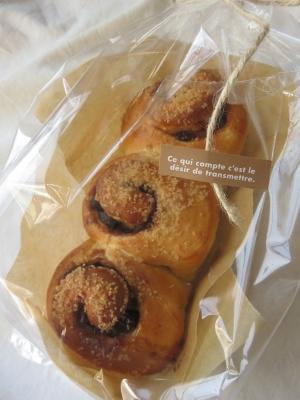 JUGEMテーマ:パン教室 12月、ミルクちぎりパンをみなさんにこねていただきますが、同じ配合の生地で、シナモンレーズンブレッドも作っていただきます。 今日、いろいろな確認のため、試作してました。 具を巻き込むという成形は、『使える』成形の1つで、コツを学んでおくととっても便利。 キレイなくるくる巻きの形ができれば、できあがりもとても素敵になります。 袋に入れて、簡単ラッピング。 これだけでも、何だかオシャレ〜♪  ...