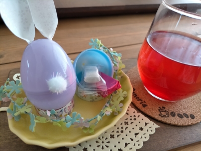 JUGEMテーマ:パン教室 今月のお茶時間。たまごの中にはチョコレートと飴。 そして、この赤色のドリンク、気になるよね〜。 ジュースではないのよ。 ストロベリー×オレンジのハーブティーです。 ローズヒップとハイビスカスも入っているので、トロピカルな感じではありますが、ストロベリーの風味もほのかにします。 甘味を感じるのですが、砂糖などが入っているわけではなく、自然な甘さとのこと。 しっかり冷やすと...