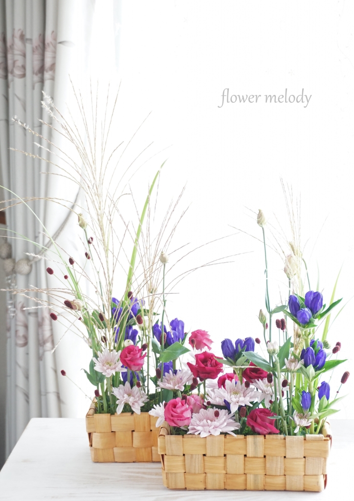 by akiko 先週、9月最後のレッスン、ちょうどススキの季節ですので パラレルアレンジに使ってみました。 穂が開いてないので細々としていますが、開くとまた存在感がでるかも。 この日使ったピンクボルドーのような色合いのトルコキキョウは まるでバラのようなフォルム。 深みのある色が、おとなしめの作品を少し華やかにしてくれました。 紅葉色ではないですが、こんな秋色もいいですね〜♪ いつもお忙しい子育ての合間に...