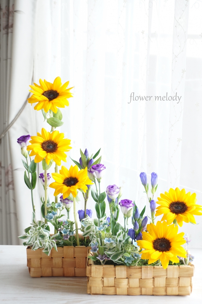 by iori 先日と同じテーマのパラレル。 花材はブルースターがデルフィニウムに変わっただけですが やはり涼しげに仕上がりました。 ヒマワリの可愛らしさがとてもよく出た作品となりました。 今月もお忙しい中お越しいただきまして、ありがとうございました‼ 〜〜〜〜〜〜〜〜〜〜〜〜〜〜〜〜〜〜〜〜〜〜〜〜〜〜〜〜〜〜〜〜〜 ★【 Narisu Beauty Festa in 北摂 7th 】に出店します 日時:2019, 6...