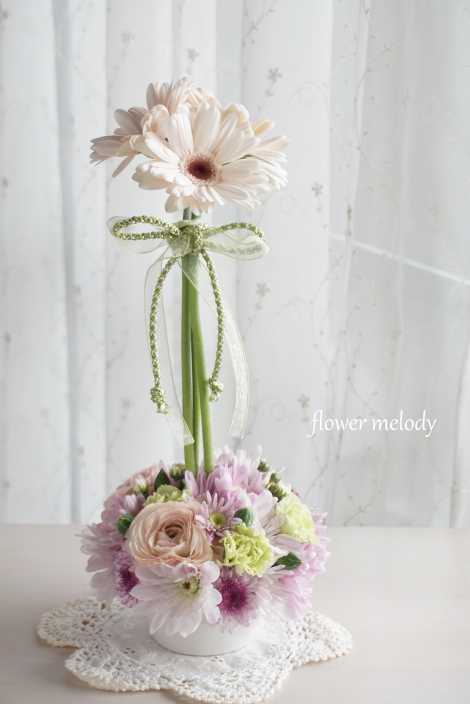 by mitsuko 先日木曜日のonedayレッスンのご報告。 灯りを点けましょぼんぼりに〜♪ の、ぼんぼりのような可愛らしいアレンジが完成いたしました。 by noriko 淡〜いピンクのガーベラに花芯のこの色合いが大好きです。 もう、可愛いとしか言いようがないアレンジ(⋈◍>◡<◍)。✧♡ キュンキュン・・・♥ 今月もご参加ありがとうございました‼ 〜〜〜〜〜〜〜...