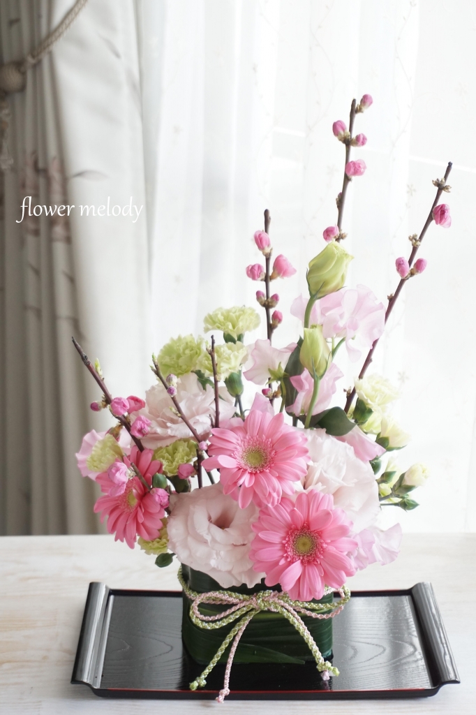 by miyako 先日土曜日のレッスンご報告です。 ひな祭りアレンジ、今回は少し濃いめのピンクで。 レッスンのお花(生花)を選ぶ際に この色もこの色もいいけど、どちらかに決めなくては・・・という時 生徒さんのイメージや好みを参考に選ぶ時があります。 こちらの生徒さんはピンクが大好きで、中でも明るいピンクのイメージ。 なので、やはりこのガーベラです。 スッキリと、バランス良く完成いたしました。 by kyoko ...