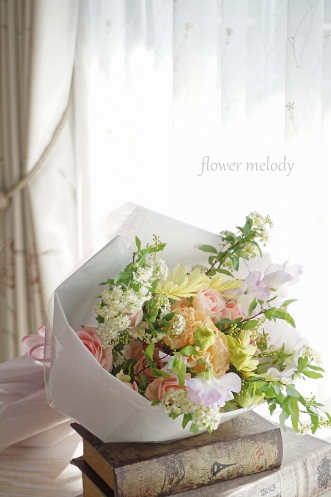 by sayaka 今月の通常レッスンはひな祭りアレンジですが 昨年4月にご入会くださった生徒さん、3月に関東へお引越しされますので 残り少ないレッスンをご希望に応じて オーダーレッスンやスキップレッスンをしております。 今回は、是非とも習っておきたかったとおっしゃる花束。 まずはスパイラルの組み方をレクチャーさせていただきましたが なんと全くの初めてにもかかわらず、手直し無しでスムーズに組まれて 綺麗なスパイラルの花束に完成! 普段からとて...