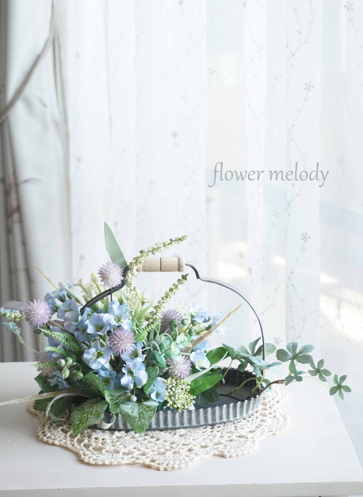 by emiko いつもお忙しい中、お時間を作ってきてくださる生徒さん達 本当にありがとうございます。 夏のアーティフィシャルフラワーアレンジレッスンも あと少しとなりました。 今日はナリスでお世話になっているベテラン生徒さん。 さすが、短時間でサクサク作業されて 凹凸もナチュラルに、バランス良く仕上がりました♪ 今回もA面とB面で違いを出されました。 こちらがB面。 ホワイト&グリーンで爽やか...