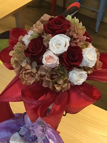 大阪と兵庫で ワイルドフラワーデザインスクールと プリザーブドフラワーデザインスクールの インストラクターと ハンドメイド雑貨を販売しています アトリエ リボン・ピーの 荳果(とうか)です。 ご訪問頂きありがとうございます 本日は プリザーブドフラワーデザインスクール心斎橋教室で フリースタイルレッスンでした ドールはお客様の持ち込み。 小さなブーケを作って、ドールにアレンジしたいと希望さ...