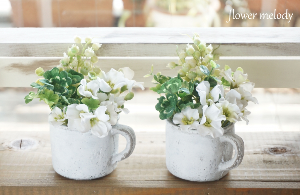 クローバーをはじめナチュラルな花材を、シャビーホワイトの花器にアレンジしました。 野原で摘んできたお花を花器にアレンジしたようなイメージです。 お花は全て上質なアーティフィシャルフラワーを使用しておりますので いつまでも綺麗な状態で長持ちします。 花器はセメント製で、ざっくりとしたシャビーな質感です。 minne、アトリエ・どんパさんにて販売しております。 minneでの...