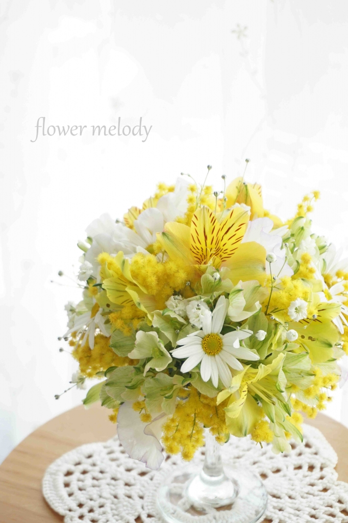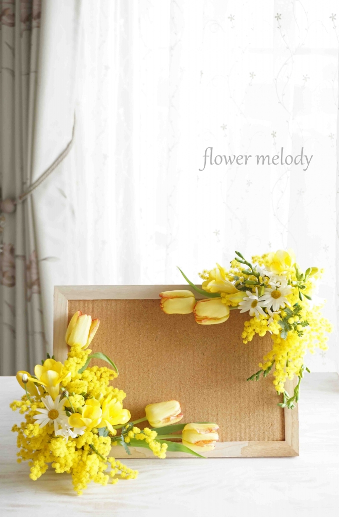 JUGEMテーマ:フラワーアレンジメント by kyoko 昨日のレッスンご報告です。 先日に引き続き、ふわふわミモザを使用しました。 もちろん全て生花のウエルカムボード。 眩しいぐらいに鮮やかな黄色です〜♪ 黄色が大好きな生徒さんに、とても喜んでいただけました。 この日はお仕事がお休みのところ 遠路はるばるお越しいただきまして、ありがとうございました!! ところで、生花のお花選びは、季...