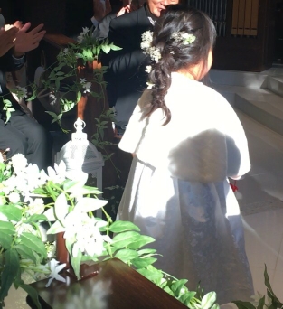 大阪と兵庫で ワイルドフラワーデザインスクールと プリザーブドフラワーデザインスクールの インストラクターと ハンドメイド雑貨を販売しています アトリエ リボン・ピーの 荳果です。 ご訪問頂きありがとうございます 先日、ご結婚式ご出席用の髪飾りと、 贈呈用の花束をご注文いただきました お客様から感謝のお言葉と共に、 実際に着用されたお写真をお送りいただきました お嬢様は小花を散らした感...