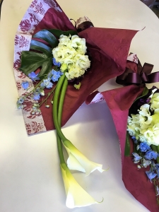 JUGEMテーマ:フラワーアレンジメント ん〜 スマホで撮った写真を PCに同期が なぜかできないのです・・・ いろいろやってみましたが 長い説明を読むと 頭が痛くなってきます・・・ 結局 アナログな方法で 写真を入れました さて 毎年1月は 「花を束ねる」 です 今年は 長いカラーと 白いバラやトルコキキョウと 少し長い デルフィーデンファレ ベルベ...