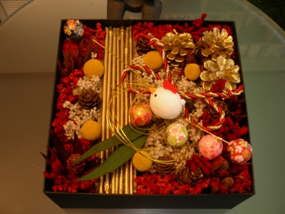 大阪と兵庫で ワイルドフラワーデザインスクールと プリザーブドフラワーデザインスクールの インストラクターと ハンドメイド雑貨を販売しています アトリエ リボン・ピーの 荳果(とうか)です。 本日はワイルドフラワーデザインスクール大阪教室で スキルアップコースです 少し早いですが お正月用のおせち風ボックスフラワーです 使用花材は サゴ カンガルー・ポー ビリーボタン ユーカリ...