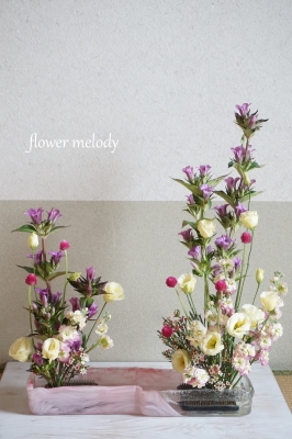 by emiko 数日前は30度近くもあったのが嘘のように、一気に涼しくなりました! なので、お花の持ちも良くなり嬉しい限りです。 今日はお久しぶりに生花レッスンの生徒さん。 お花のアレンジは、こちらの教室での吸水フォームを使った レッスンがスタートだったので 剣山を使った生け花風の作品は、苦手だとのこと。 剣山を使うアレンジの教室は、そんなに無いと思いますが こちらでは、長く続けていくと、たま〜に登場します。 あっ、...