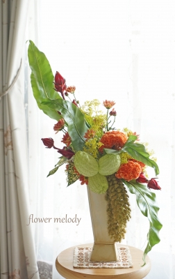 by kazuko.i 長い夏休みもあっという間に終わり 今日から通常レッスン再開しました。 久しぶりで、前日からひそかにちょっとだけ緊張感。 やはり、人間ある程度の緊張感は日々必要ですね・・・ でないと、歳とともに頭も体もなまってしまいそうです(^^;) まずは、とっても難しいホガース型。 S字曲線型です。 おまけに、ケイトウ、フウセントウワタ、ベニアオイ、アワ そしてタニワタリ・・・と、難しい花材ばかりでしたが とても上手にアレン...