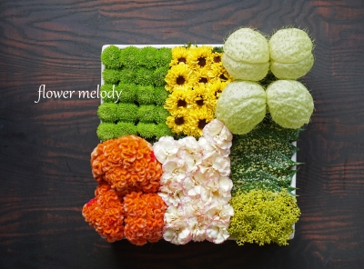 by maki お久しぶりの生花レッスンの生徒さん、 9月1週目は地域周辺の高校の体育祭シーズンで 先日お仕事のお休みをとられて 高校生活最後の体育祭を 1日がかりでご夫婦で楽しんで来られたそうです♪ 我が子の高校が同じだったこともあり 早朝からの席取りのお話しや、内容についてのお話で盛り上がりました。 今となっては遠い昔のような気がして、とっても懐かしく感じられます。 さて、今日はちょっと斬新なアレンジ・・・ パッチワークのように平面を...
