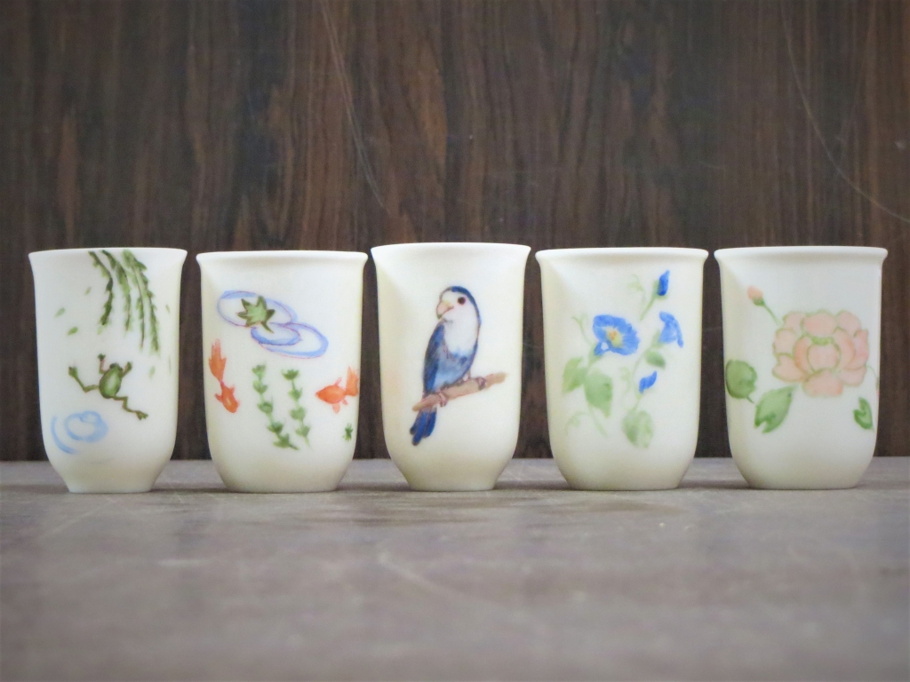JUGEMテーマ:陶芸教室 今回ご紹介する作品は、生徒さんの作品です。 とても絵付けが上手な方の作品で、とても涼しげで美しかったのでご紹介させてください。 真っ白い器をキャンバスに、上絵付が涼しくて 素敵です。 すごく小さい茶器です。季節感が感じれて特別な楽しみ方...
