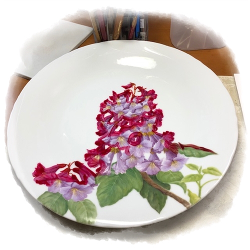 オーダー頂いていた桐の花の飾り皿 やっと全ての工程が終わり仕上がりました〜♪ マスキング作業をしてバックに光の表現は3色使い(余り目立ちませんが💦) その後焼成し、バランス的に蝶でも入れてみようかと そして2回の焼成後、金彩はちょっと動きを出すために敢えて一部を欠けさせて JUGEMテーマ:ポーセリン 桐の花の色を考えると、やっぱり瑠璃色の蝶が良いかなぁと 蝶もブルー系2色を使い、こんな仕上がりにしてみました 月曜日には配送の手続き、気に入って頂けるかなぁ、、、...