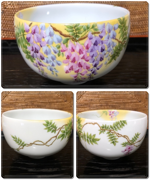 JUGEMテーマ:ポーセリン イルカちゃんと一緒に進めだした藤の抹茶茶碗 お任せのオーダーですが、待って頂けるので二客同時制作中 一つはポッテリとした小田陶器の白磁椀、特にお抹茶用ではないが掌に収まりが良い 白が綺麗なのと、色の定着が良い感じで最近のお気に入りの白磁 1回目の焼成が終わったところ、正面を外してお茶を頂くので向こうにも藤を少し入れた 此方は京焼の仁清写しの抹茶茶碗 細かな貫入りで地色は生成り色の様な感じ 此方はペンで線描き、これから彩色していきます やはり正面を外した時に...