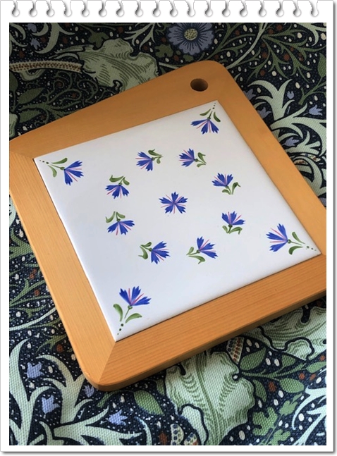 JUGEMテーマ:ポーセリン 先週から新しいお生徒さんをお迎えしました 数年まえから「何時もお元気で、フットワーク軽い方だなぁ」と拝見しているブロガーさん 常に前向きに頑張ってらっしゃるみるくさん ブログ繋がりで、今春の展示会にもお越し頂き、ブログつながりの不思議なご縁を感じました 初めての作品はブルーエ(矢車草)の小さなカッティングボード 午前中はタイルに練習 楔方の線を3本束ねる事で花弁が一つ出来ます 細い2cm程有る長穂の筆で描くのですが、私もそうだった様に中々上手く描け...