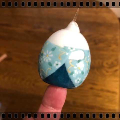 JUGEMテーマ:ポーセリン お生徒さんと一緒に豆雛を描き始めました 当然、私は一足早くお見本を作らねばなりませぬ(;^_^A 兎に角、持つところの制約が多く、やっとここまで漕ぎつけました(笑) ピンポン玉より未だ小さいくらい ほら〜人差し指がやっと入る位なんです はて・・・この先一旦焼成するか?一日位乾燥させてから次の工程に移るとするか? 今度はお目目、お口、髪の毛、冠他 如何持って描こうか? 効率よく進めるには如何いう工程が良いのか? 老人の頭の体操には良いかもねぇ( *´艸`)