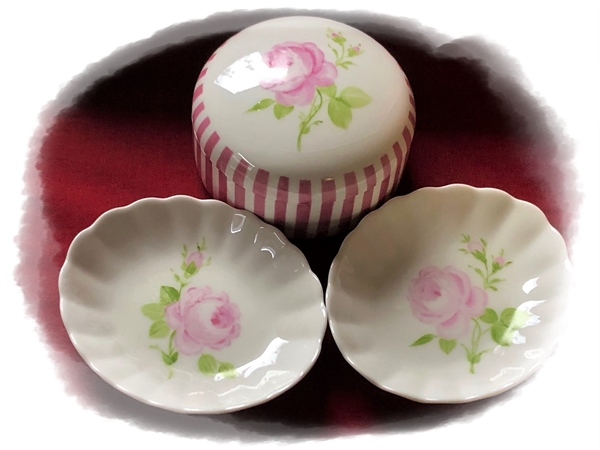 JUGEMテーマ:ポーセリン 10年以上アメリカンをなさって来たお生徒さん アトリエに犬の絵を描きに来てくださって以来、ヨーロピアンも始められています 先日、バラは一度も描いたことが無いし無理無理〜なんて仰ってましたが・・・ 避けて通れないバラ、是非描きましょうと 丸筆で速乾性のバルサムで初めて描かれたバラ ほら〜とっても上手に描かれていらっしゃる〜💕 一度目の焼成が終わったところなので未だボンヤリとしていますね 丸い蓋物は12cm程、フリフリのナッピー皿はご自宅で練習して来た作品...