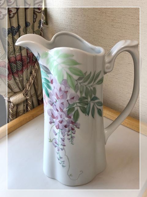 JUGEMテーマ:ポーセリン 来年の4月に、パンフラワーのベテラン先生の雪子さんとのコラボ展を予定しています。 まだまだ先の様に感じていましたが、もう一年を切ってしまいました。 我が家の老犬(来月で満15歳)の介護と今年の長〜い酷暑で何だか疲れて中々作品を作ることが出来ません。 やっと朝夕秋めいてきて過ごし易くなり、作品を描く時間も増えました。 窯に沢山入れて焼成するので、まずは作品を作り溜めねば、、、 今回は藤の縦長のベース、描き始める前までは地色は黒と考えていましたが、描...