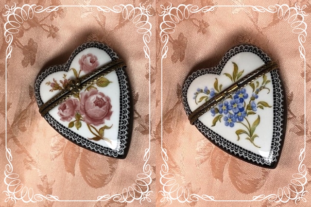 JUGEMテーマ:ポーセリン 手の中にスッポリと収まるハート型のヒンジボックス どうしてもセピア色のバラを描いて見たくてこんな風に 細かいレースも全て手描き、目がチカチカ肩はコリコリ〜でも細かい作業が好きなんです♪