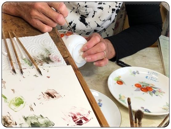 JUGEMテーマ:ポーセリン 久々のお教室風景です💦 ついついカメラに収めるのを忘れちゃうもので・・・ 大倉のC&Sに、マイセンのフルーツブーケを描いていらっしゃいます 少しヨーロピアンのオイルから離れていらしたので、絵具とオイルの感覚に慣れるまでが大変ですねぇ でも、綺麗に描かれていらっしゃるので嬉しいですね♪ マイセンのC&Sをお手本にして、見本用のプレートにデモンストレーションを行います その筆使いを見て頂いて、ご自分の作品を描いて頂いておりま...
