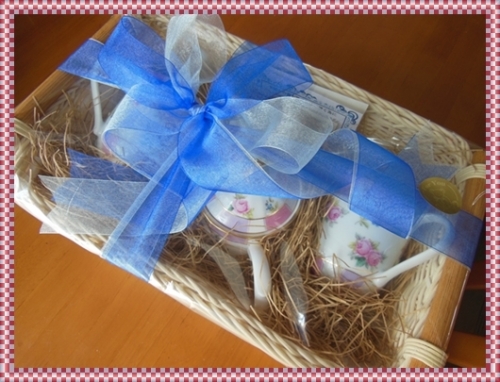JUGEMテーマ:ポーセリン 前回かいていたポットとマグカップのセット 何時もはお箱に入れるのですが、今回は友人宅へのプレゼント用なのでラタンの籠に入れてみました さあ! お届けに伺わなくっちゃ〜♪