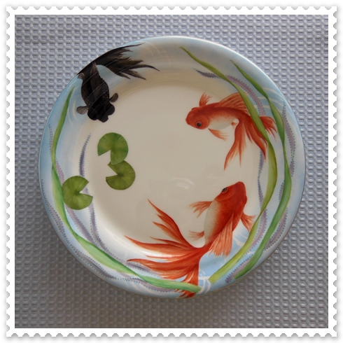 JUGEMテーマ:ポーセリン 昨年にオーダー戴いた金魚の飾り皿がやっと仕上がりました 順番に頂いたオーダーを描いていると、可なりお待たせしちゃいました でも、、、何だかラスター部分(水草)が気に入らない 納得がいかないので金彩を施してみようかと思います ニッコーの白磁 26cm