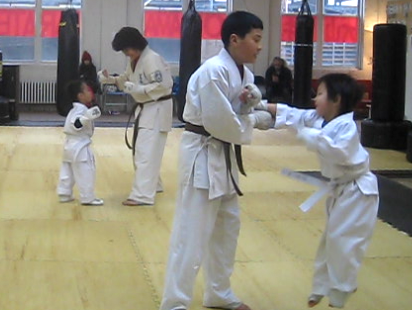 JUGEMテーマ:空手Kids小さい子と楽しく戯れるのもマストです かかと落とし命中 Adult洗練された動きには程遠い でも今日も彼は気合で相手にぶつかっていきます。 クリックお願いします NYへっぽこ空手先生topへ道場ホームページ