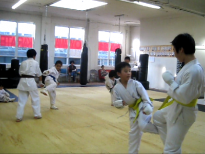 JUGEMテーマ:空手Adultティーンクラス 伸び伸びやるのはいいんですけどコイツラ少々おふざけが・・・ 紳よ、お前もか 基本的に子供たちの自主性を重んじて・・・ とか言いたいとこなんですけど アレ、当たっちゃったょ クリックお願いしますNYへっぽこ空手先生topへ道場ホームページ