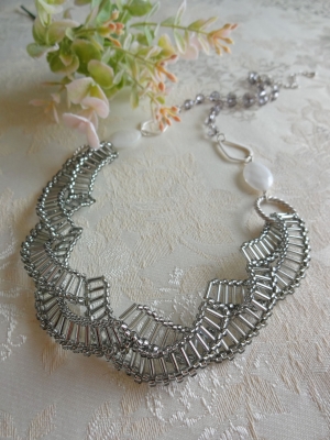 JUGEMテーマ:ビーズ 本日新作をUPしました。 竹ビーズなどを組み合わせて縄状に編んだ モダンなネックレス。 ケーブル模様のネックレス *aquadrop*