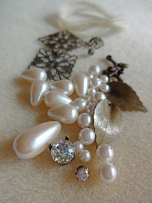 JUGEMテーマ:ビーズ メタルパーツとパールを使って フェミニンなブローチを作ります。 出来上がりはこんな感じに。。。