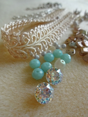 JUGEMテーマ:ビーズ ブレードリボンにボヘミアンビーズやパール、 ラインストーンなどで作ったモチーフを留めつけて フェミニンなネックレスを作ります。