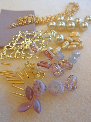 JUGEMテーマ:ビーズ アンティークやヴィンテージビーズを使って。。。 ゴールドとラベンダー色がエレガントな雰囲気の ネックレスを作ります。
