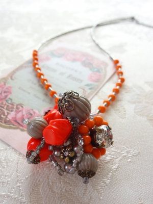JUGEMテーマ:ビーズメゾン・エ・オブジェでの今年のトレンドカラーオレンジを使って・・・ マンダリンオレンジの花ネックレスアンティークのオレンジが効いてます。 *aquadrop*